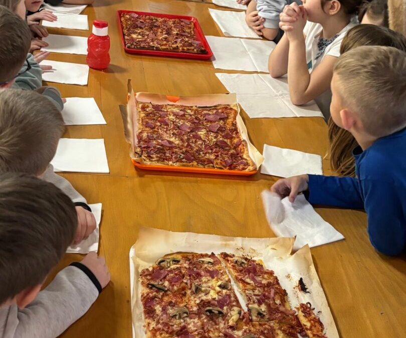Učenici od 1. do 4. razreda OŠ Pokupsko zajedno s učenicima iz područne škole Hotnja obilježili su Svjetski dan pizze nezaboravnim druženjem. Uz smijeh i timski rad, polaznici izvannastavne aktivnosti “Kad se male ruke slože” preuzeli su kuhinju u svoje ruke! Mali kuhari zamjesili su svježe tijesto, pripremili namirnice i maestralno narezali salamu, sir i gljive. Na pizze su dodali kukuruz, kulen, masline i nezaobilazni kečap, stvarajući prava mala remek-djela. Sve je završilo toplim zalogajima i radostnim licima – pravi recept za sretan dan! Sretan vam Svjetski dan pizze!